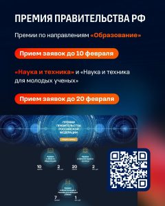 ПРОДОЛЖАЕТСЯ ПРИЁМ ЗАЯВОК НА СОИСКАНИЕ ПРЕМИЙ ПРАВИТЕЛЬСТВА РОССИЙСКОЙ ФЕДЕРАЦИИ 2026 ГОДА