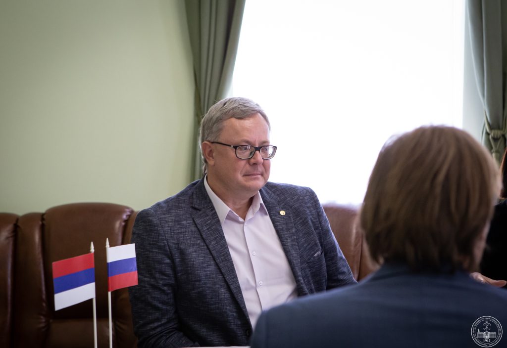 29 сентября Воронежский ГАУ посетила делегация университета Восточного Сараево. В состав делегации вошли ректор Милан Кулич и проректор по международным связям и управлению качеством Марко Гуталь. Воронежский ГАУ на встрече представили врио ректора Анна Александровна Воронина, врио проректора по научной работе Сергей Николаевич Семенов и заведующий отделом по международным связям Татьяна Николаевна Лысак.