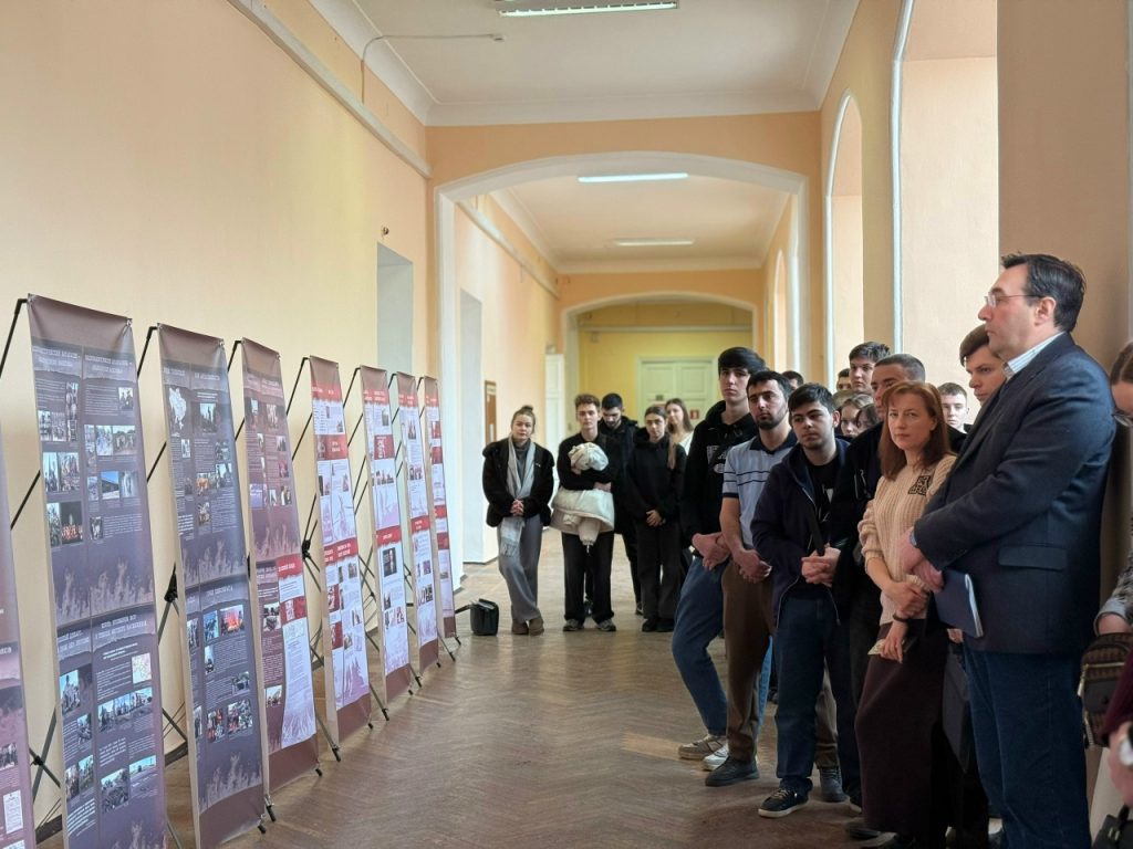С приветственным словом к студентам, преподавателям и гостям обратилась Ольга Юрьевна Агеева врио проректора по воспитательной работе и молодежной политике ВГАУ. Она отметила, что долг образованного общества — не оставаться в стороне и осмысливать происходящее, сохраняя память о невинных жертвах.