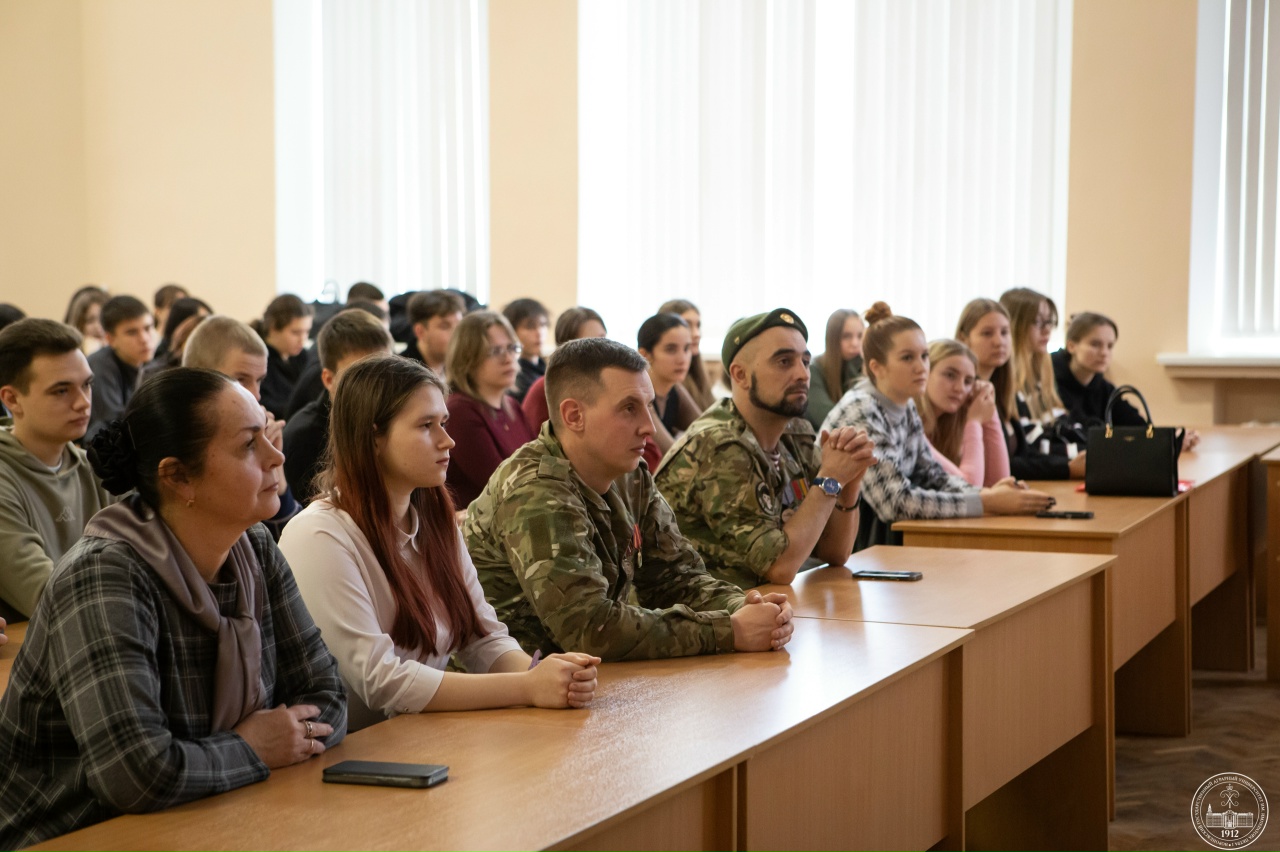 Мероприятие открыла врио проректора по социально-воспитательной работе и молодежной политике Ольга Юрьевна Агеева. В своем приветственном слове она подчеркнула важность сохранения памяти о подвигах защитников Отечества для сохранения исторической правды и мирной жизни.