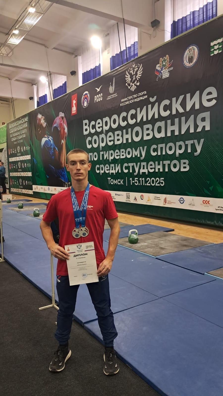 Соболев Никита, студент Агроинженерного факультета, завоевал две серебряные медали на Всероссийских соревнованиях по гиревому спорту!