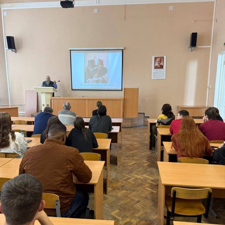 Студенты погрузились в историю: узнали, как именно Докучаев совершил революцию в естествознании, доказав, что почва — это не просто горная порода, а самостоятельное природное тело. Именно он заложил фундамент современного почвоведения и раскрыл законы происхождения чернозема — нашего главного богатства.