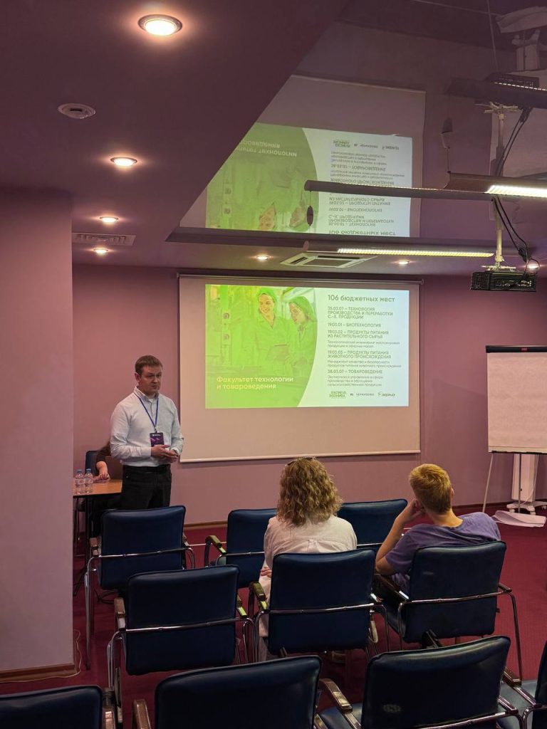 Особое внимание было уделено лекционному формату. Руководитель центра по работе с абитуриентами Павел Валерьевич Демидов выступил с лекцией на тему «Траектория аграрного образования: возможности и перспективы». На стенде университета специалисты центра по работе с абитуриентами и отдела по сопровождению целевого приёма рассказали об истории ВГАУ, актуальных образовательных программах, научных проектах и особенностях приёмной кампании следующего года.