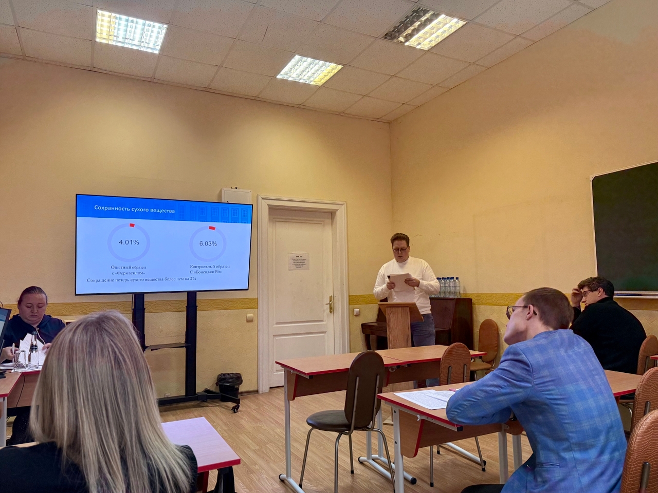 Научная молодёжь Воронежского ГАУ приняла участие в конференции, представив результаты исследований, выполненных на высоком методическом уровне. В секции «Разведение, селекция, генетика и биотехнология животных» Алина Андреевна Стрибунова (аспирант, преподаватель СПО кафедры общей зоотехнии) выступила с докладом «Сравнительный анализ роста и развития ремонтного молодняка в зависимости от биотехнологического генезиса». Работа выполнена под руководством кандидата сельскохозяйственных наук Евгения Сергеевича Артемова. В секции «Частная зоотехния, кормление, технологии приготовления кормов и производства продукции животноводства» студент Кирилл Алексеевич Титков в своём выступлении «Влияние биологического консерванта «Фермасил» на сохранность питательных веществ и качество кукурузного силоса» раскрыл перспективы применения отечественных биоконсервантов (научный руководитель — доктор сельскохозяйственных наук, профессор Александр Викторович Востроилов). Оба выступления вызвали живой отклик аудитории и подтвердили высокий уровень подготовки молодых исследователей.